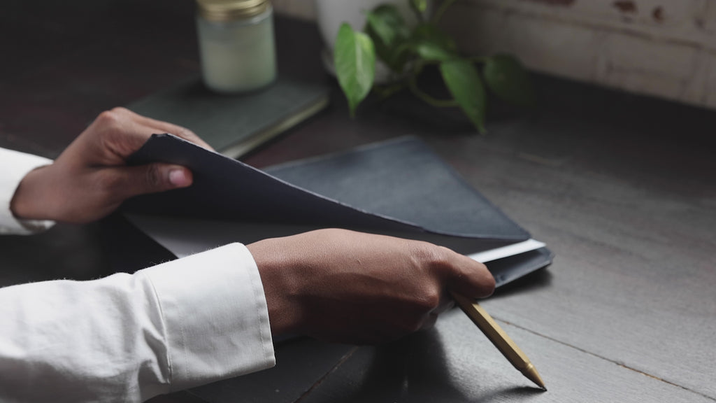 Get Creative! What will your sustainable leather file folder say? Perfect for initials or symbols that tell your story (e.g., KPR, K&L).