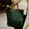 Introducing your new favorite Custom Market Tote! Crafted with pride in the USA using 100% cotton and sustainable leather, this durable tote is perfect for eco-conscious shoppers and style enthusiasts. Its spacious interior and sturdy handles are ideal for groceries, market finds, or beach essentials. It features an interior pouch and key snap to keep smaller items safe and accessible. Personalize it with up to three characters to make it truly one-of-a-kind. Give the gift of style, sustainability, and practicality! Dimensions 16.25" L x 5" W x 14.25" H, Handle Drop: 7.5", Interior Pocket: 8.6" x 5.5".