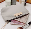 Part of our Canvas Collection, this beautiful pouch is crafted with pride in the USA using high-quality cotton canvas and sustainable vegetable tanned leather. We assemble each bag with our signature antique brass rivets and a beautiful antique brass YKK zipper, and all interior seams are bound for extra strength and durability. Personalize your pouch with up to 3 characters and choose to add some foil, if you wish, for some extra flair. You'll be proud to carry this pouch for years to come! Perfect for your everyday carry needs, as a toiletry or makeup bag, a pencil pouch, or for organizing tech accessories. Dimensions 8.5" L x 2.25" W x 5" H